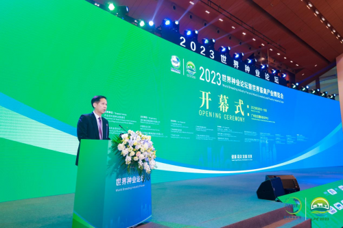 温氏集团董事长温志芬、中国农业大学MBA教育中心主任付文阁、广东省农业农村厅二级巡视员何国威、农业农村部种业管理司一级巡视员孙好勤先后发表致辞,华南农业大学教授、中芯种业董事长吴珍芳担任开幕式主持人并宣布大会开幕。